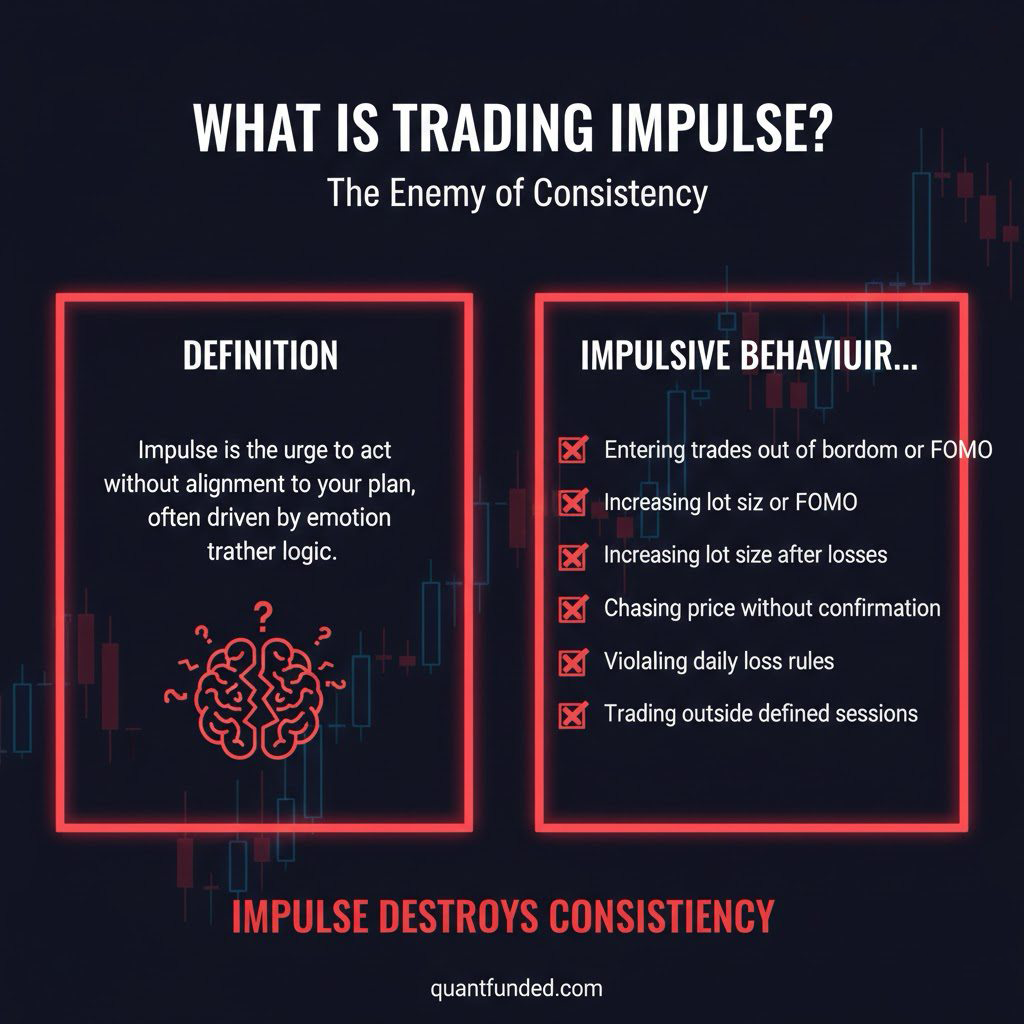 Impulse is the opposite of discipline. It is the urge to act without alignment to your plan, often driven by emotion rather than logic.
