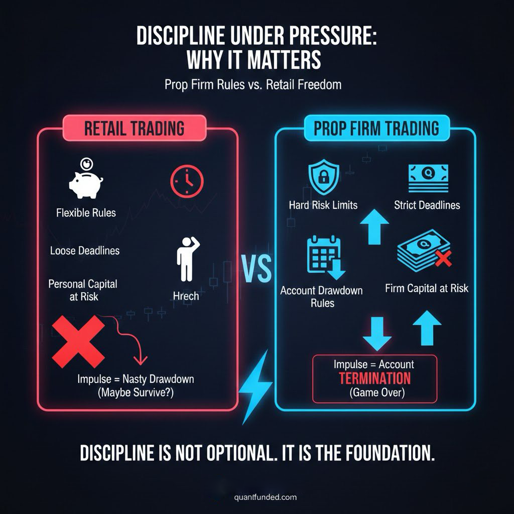 Prop firm trading is fundamentally different from casual retail trading.