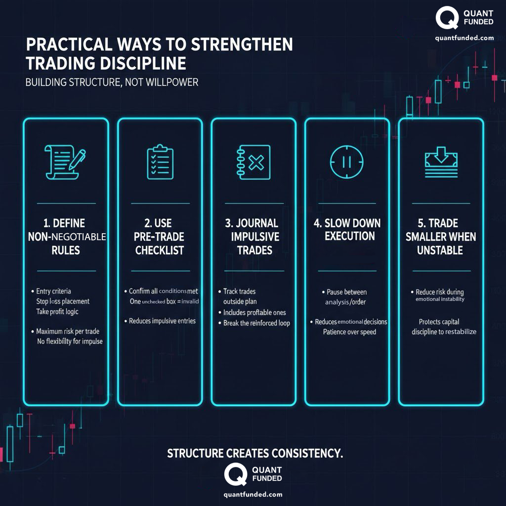 This is why trading discipline is one of the most critical skills for success at Quant Funded. The rules are designed to reward traders who demonstrate control, patience, and consistency — not emotional reactions.