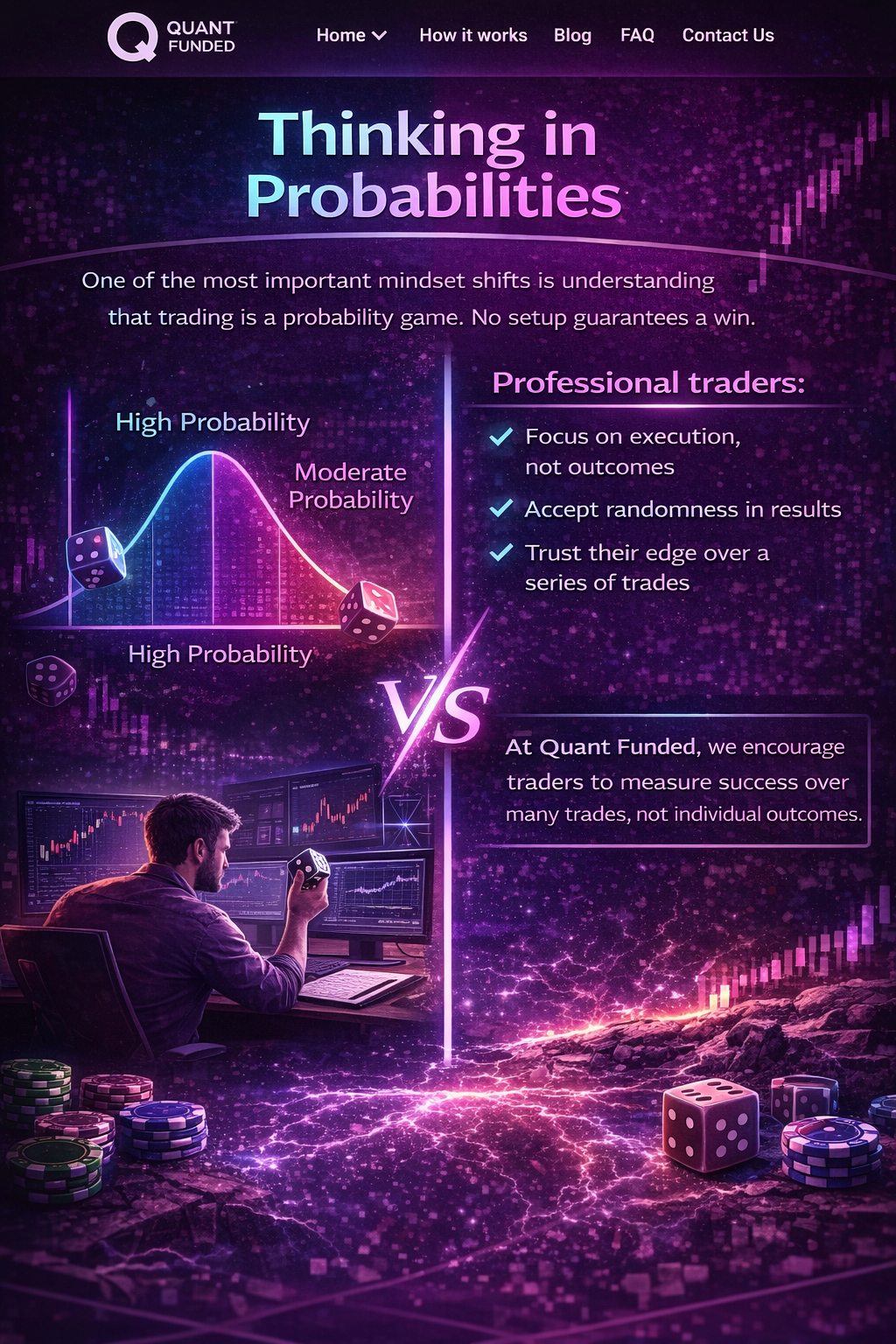 At Quant Funded, we encourage traders to measure success over many trades, not individual outcomes.