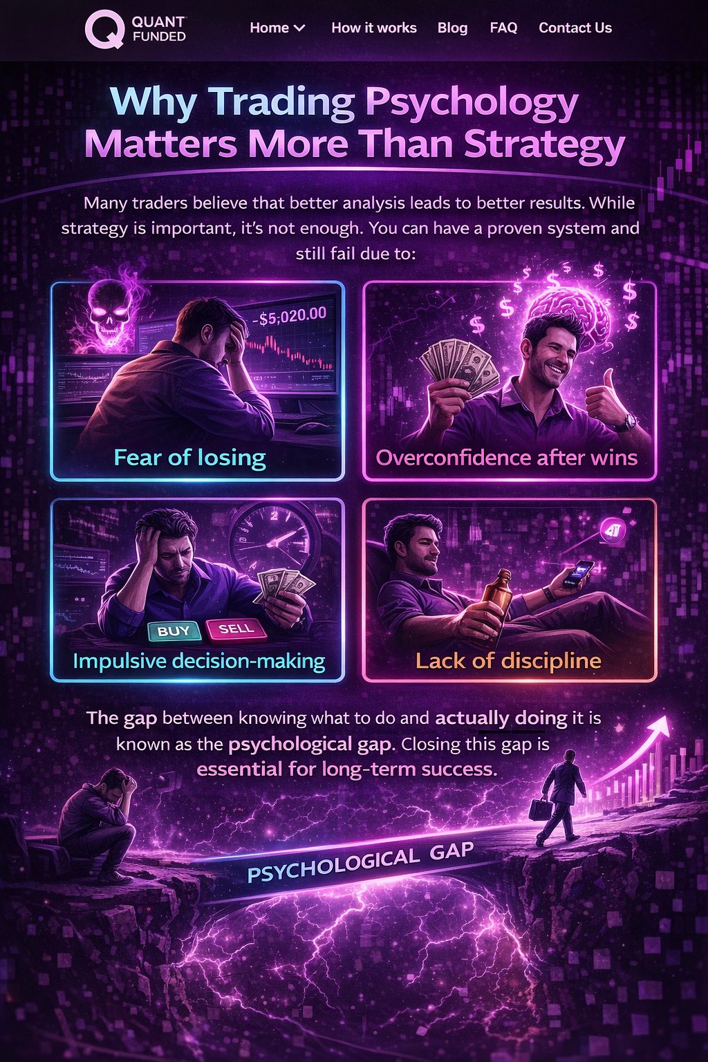 In the world of proprietary trading, success is often associated with strategy, technical analysis, and market knowledge. However, at Quant Funded, we understand that the true edge lies beyond charts and indicators—it lies in your mindset. Trading psychology is the hidden force that separates consistently profitable traders from those who struggle.