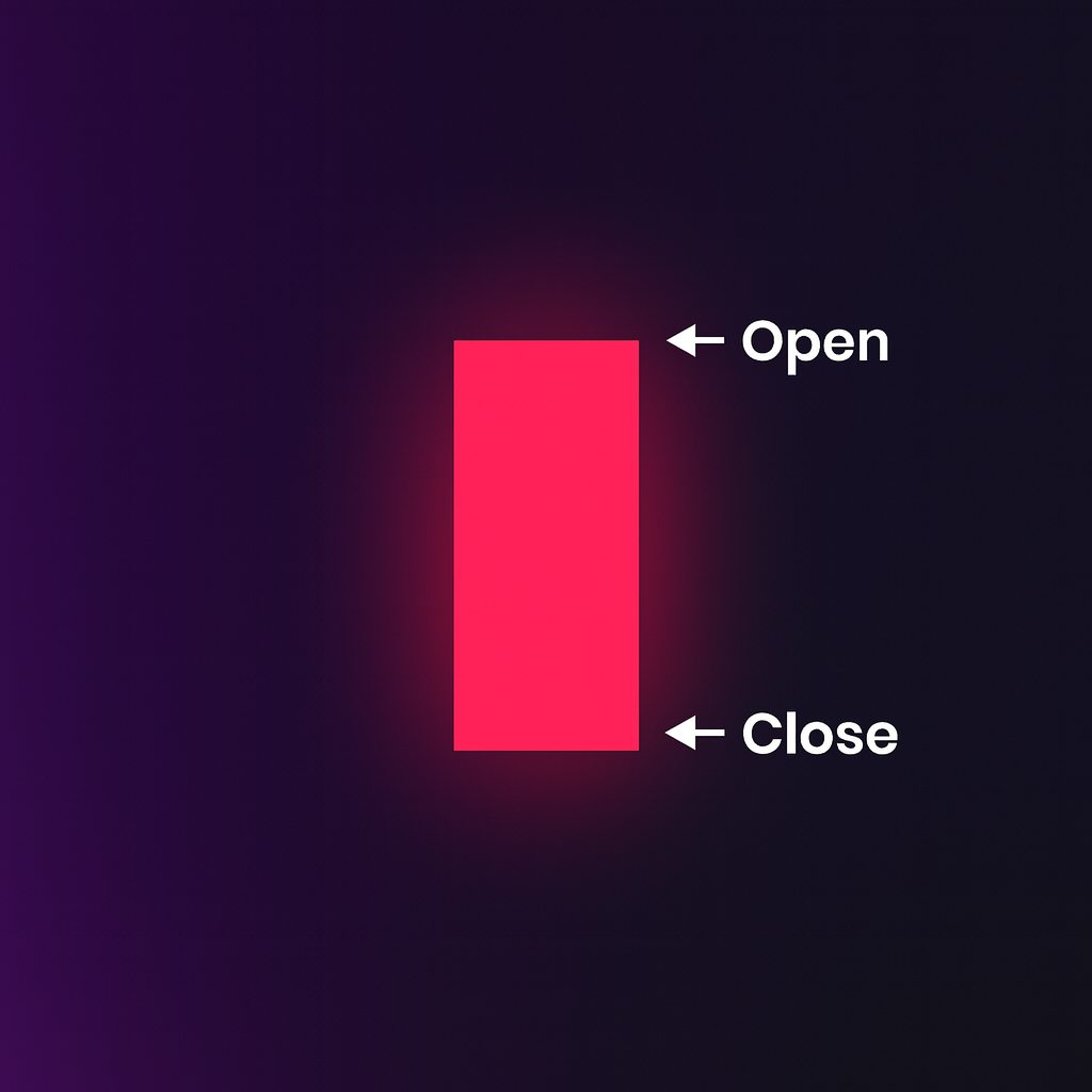 A bearish candle (usually red) indicates price closed lower than it opened.