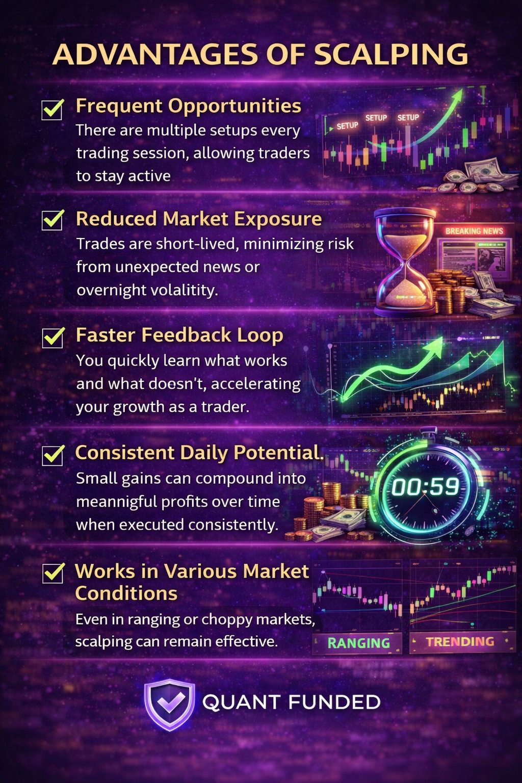 Scalping can be especially effective when trading with a funded account like Quant Funded because: