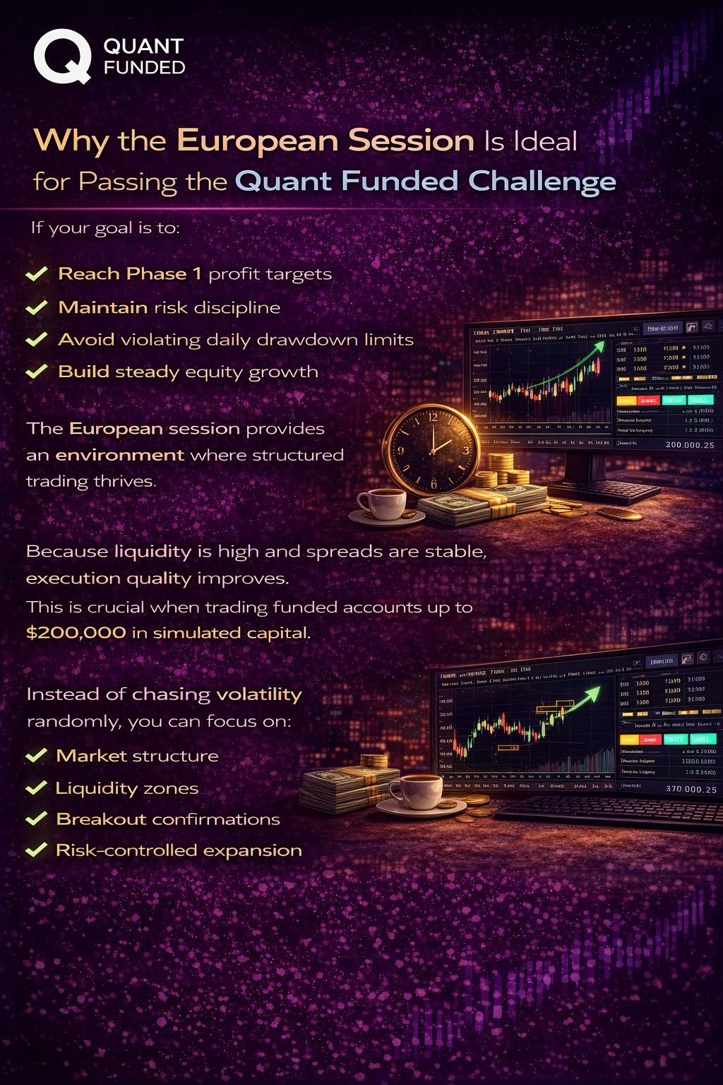 If you are serious about passing the Quant Funded Challenge and scaling toward larger capital allocations, mastering the European session should be part of your trading framework.