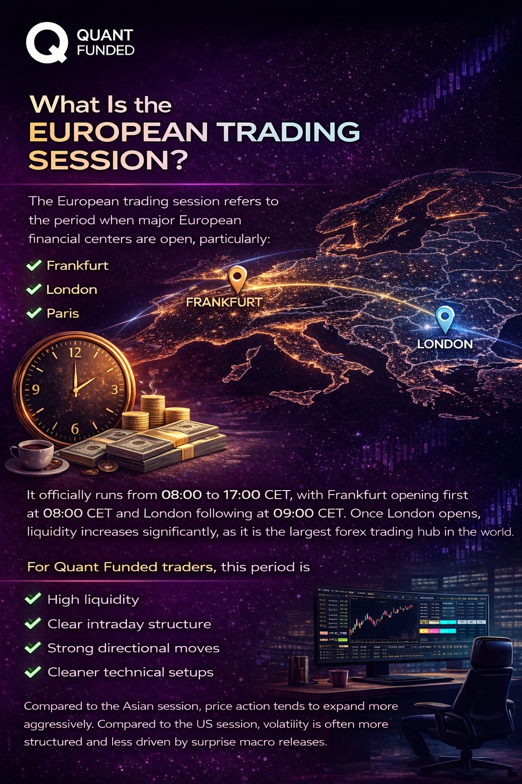The European trading session is one of the most important parts of the forex trading day. For serious traders participating in the Quant Funded Challenge, understanding how the European session behaves can significantly improve consistency, risk management, and overall performance.